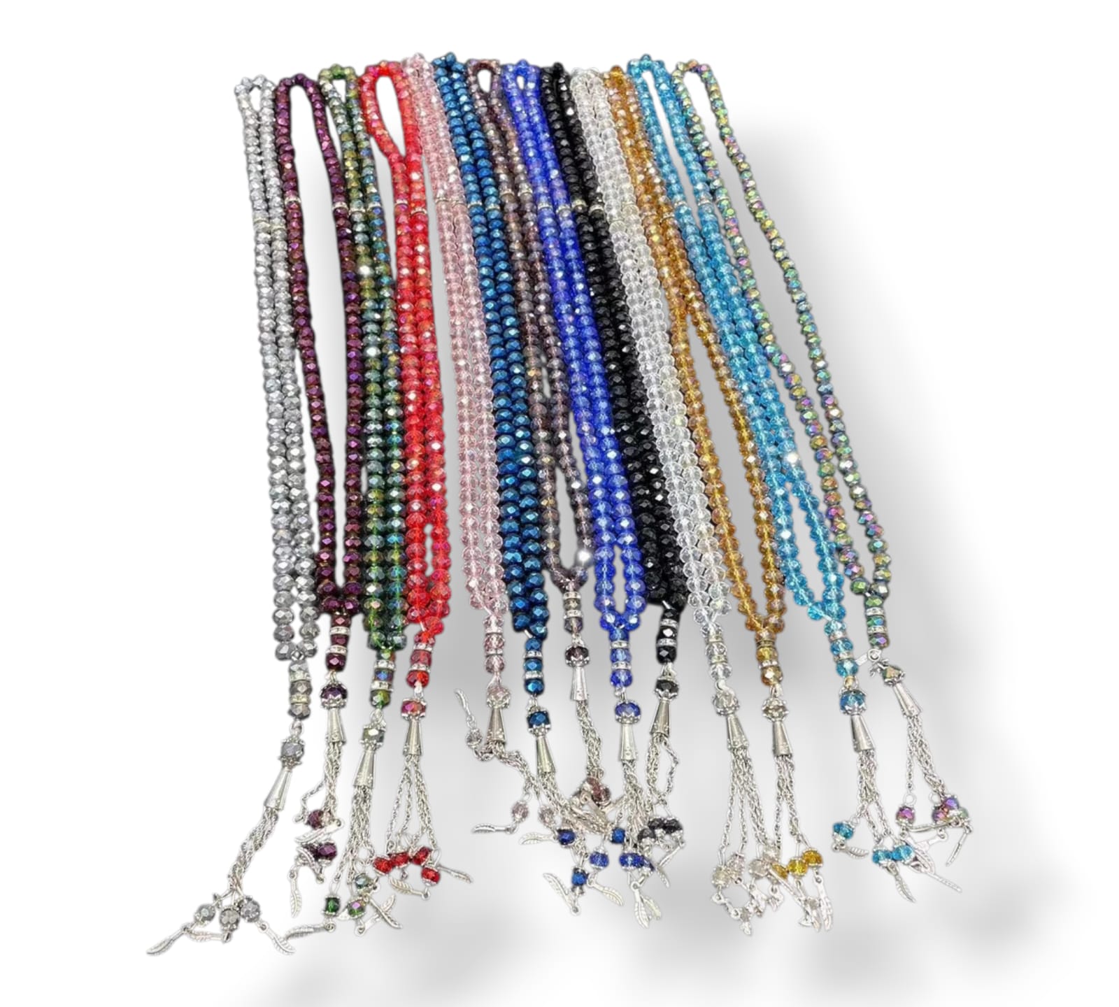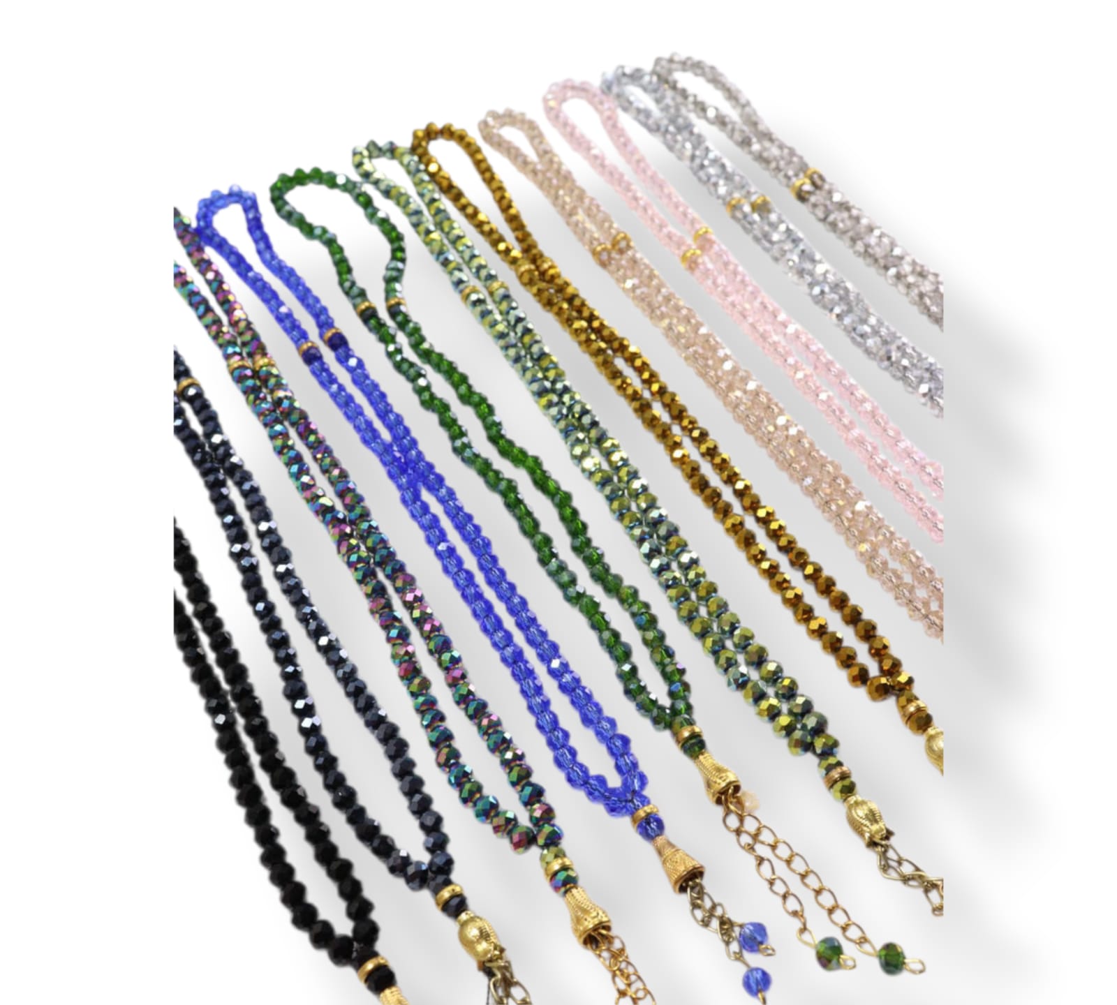 سبحة متميزة بحبات لامعة تشبه الكريستال، تتوفر بألوان متعددة
