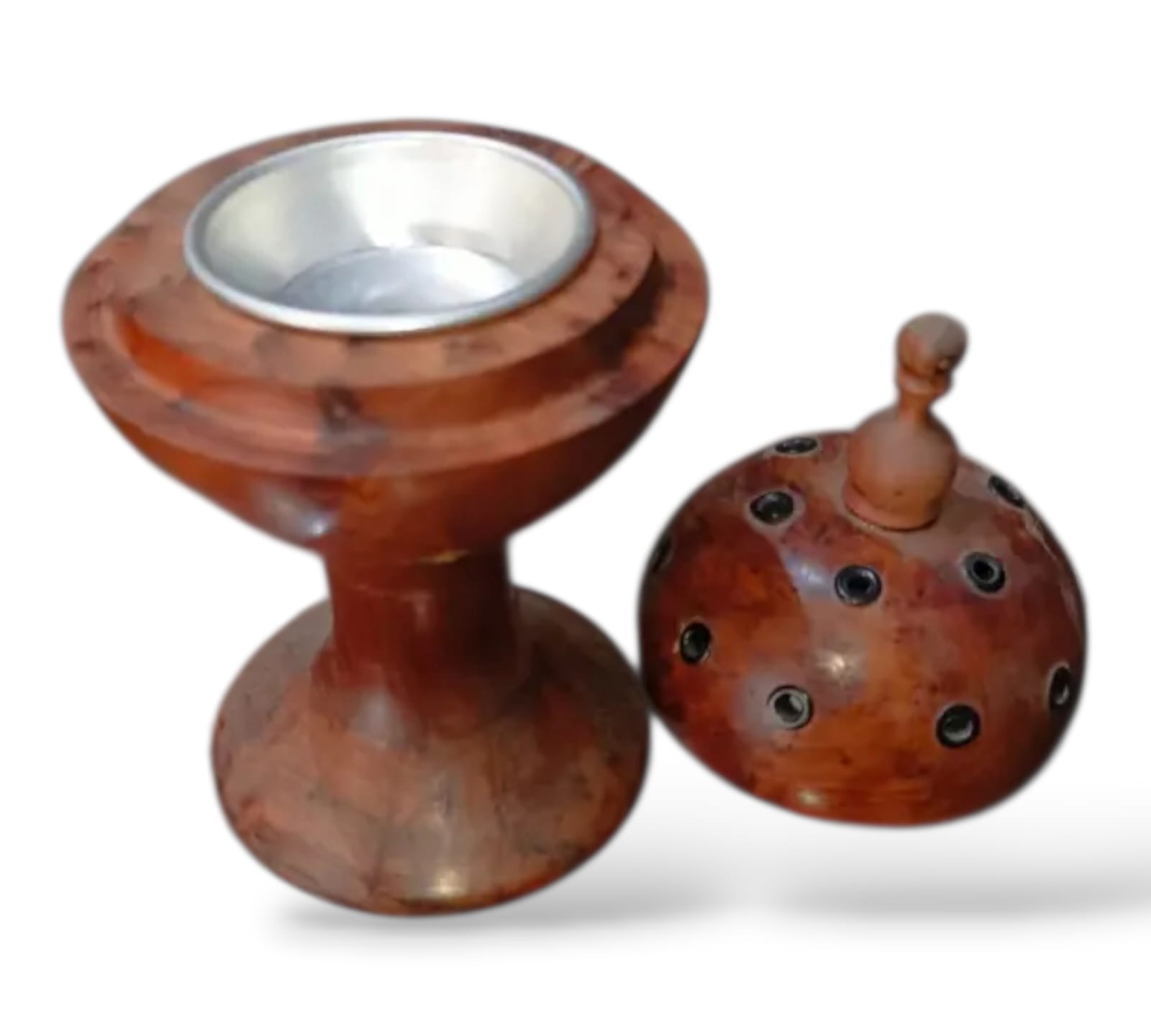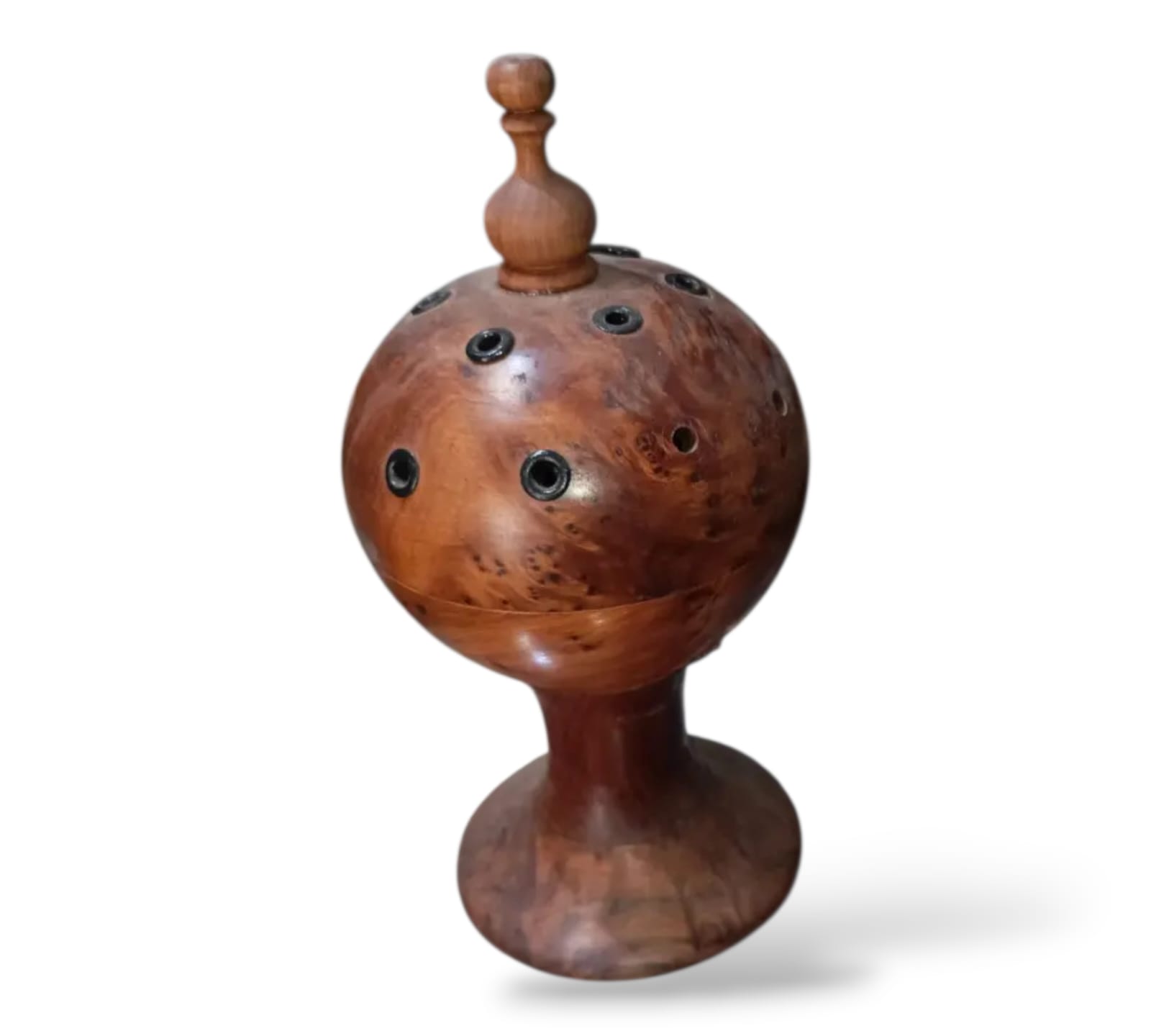 مبخرة خشبية أصيلة مصنوعة من خشب العرعار الطبيعي الذي يتميز برائحته الزكية وتصميماته التقليدية الفريدة.